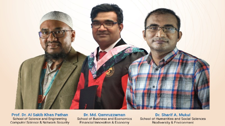 Prof. Dr. Al Sakib Khan Pathan, School of Science and Engineering for the field of Computer Science & Network Security, Dr. Md. Kamruzzaman, School of Business and Economics, UIU for the field of Financial Innovation & Economy and Dr. Sharif Ahmed Mukul School of Humanities and Social Sciences, UIU for the field of Biodiversity & Environment were listed in the World's Top 2% Scientists. They received this prominent honor for their exceptional contribution to scientific research, and innovation.